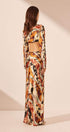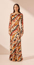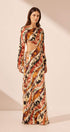 Ella Baskılı Dekolteli Uzun Elbise