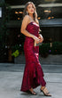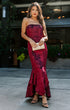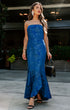Elliana Straplez Kabartmalı Fırfırlı Maxi Elbise