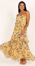 Elsie Baskılı Katlı Straplez Uzun Elbise