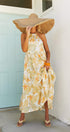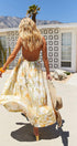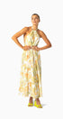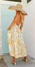 Ely Baskılı Ayçiçeği Boyundan Bağlı Sırtı Açık Uzun Elbise
