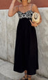 İşlemeli Büzgülü İnce Askılı Uzun Elbise