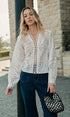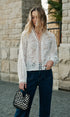 Yarı Transparan Nakışlı Dekolteli Detaylı Bluz