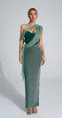 Zümrüt Yeşili Boyundan Askılı Maxi Elbise