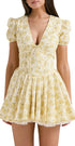 Emily Çiçekli V Yaka Korse Mini Elbise
