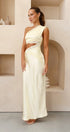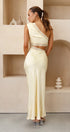Figürünüzü güzel bir şekilde çerçeveleyen şık, tek omuzlu tasarıma sahip, çarpıcı maksimum uzunlukta elbisemizle zarafeti kucaklayın. Göz alıcı yan bel kesimi, modern bir dokunuş katarak her türlü kalabalığın içinde öne çıkmanızı sağlar. Zarif dantel kenar detaylandırması elbisenin zarafetini artırıyor ve onu özel günler için mükemmel kılıyor.
