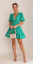 Sofistike ve çağdaş bir görünüm için tasarlanan Sophia Elbise ile tarzınızı yükseltin. Yarım balon kollu ve derin V yakalı bu elbise, modern zarafeti yansıtıyor. Göğüs üzerindeki çift kanca ve kopça, güvenli bir uyum sağlarken, kalın, elastik bel bandı figürünüzü vurgular.