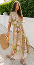 Eunice Baskılı V Yaka Maxi Elbise