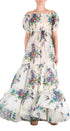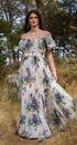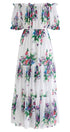 Evadane Baskılı Omuzu Açık Piliseli Maxi Elbise
