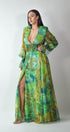 Eve Tropikal Desenli V-nevk Uzun Elbise