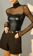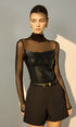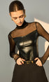 Suni Deri Panelli Şeffaf Tişört