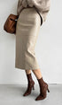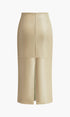 Suni Deri Biyeli Yırtmaçlı Midi Etek
