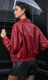 Fermuarlı Polo Yaka Suni Deri Ceket