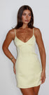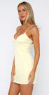 Tüm gözlerin üzerinizde olmasını sağlayacak mükemmel gardırop ilavesi! Limonlu Enerji Mini Elbise ince ayarlanabilir askılara, toplanmış detaylı göğüs kaplarına, saran silüete, astarlı, mini uzunluğa ve kanca ve gözlü gizli bir arka orta fermuara sahiptir. Altın aksesuarlar ve parlak topuklu ayakkabılarınızla şık bir hava yaratın!