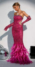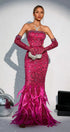 Felicity Tüylü Pembe Uzun Elbise
