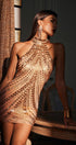 Fella Boyundan Bağlamalı Taşlı Mini Elbise
