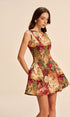 Çiçek Desenli Sırtı Açık Kloş Elbise