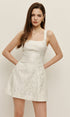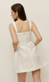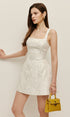 Çiçek Desenli Jakarlı Kare Yaka Elbise