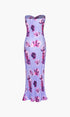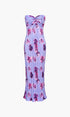 Çiçekli Plisse Twist Tüp Uzun Elbise