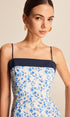 Çiçek Desenli Renk Bloklu Askılı Elbise