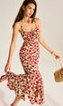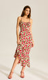 Çiçek Desenli Volanlı Etek Uzun Elbise