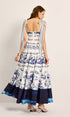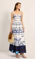 Çiçek Desenli Bağcıklı Katmanlı Maxi Elbise
