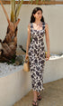 Çiçek Desenli Kare Yaka Askılı Elbise
