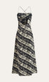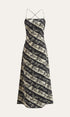 Çiçekli Çizgili Çapraz Sırtlı Uzun Elbise