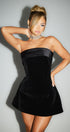 Gecenin yıldızı olmaya hazır mısınız? Bu kadife elbise, zarif kat detayı ve etkileyici formuyla her adımda büyüleyici bir görünüm sunar.