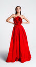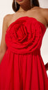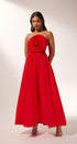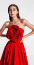 Bu zarif askısız elbisenin göğüs kısmında romantik bir gül detayı ve bel kısmında göz alıcı büzgüler göz alıcı bir siluet yaratıyor. Hafif bir esnekliğe sahip polyesterden yapılmış olup rahat, hoş bir uyum ve zarif bir maksimum uzunluk sunar. Arka orta kısımdaki görünmez fermuar kusursuz bir görünüm sağlar.