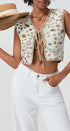 Moda öncüsü jakarlı yeleğimizle gardırobunuzu yükseltin. Şık V yakalı ve karmaşık 3 boyutlu desenlerle tasarlanan bu kısa, önü açık yelek, polyester ve çarpıcı panel detaylarının şık bir karışımını sunuyor. Tek göğüslü, çok düğmeli kapatma, sofistike bir dokunuş katıyor.