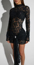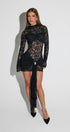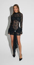 Romantik dantel dokusu, zarif drape detayı ve göz alıcı formuyla bu mini elbise, davetlerin favorisi olmaya aday.
