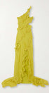 Gloria Tek Omuzlu Volanlı Uzun Şifon Elbise