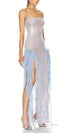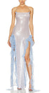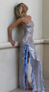 Gloria Payetler Çiçek Fırfırlı Uzun Elbise