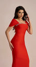 Grace Kristal Taşlı Kare Yaka Uzun Elbise