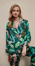 Yeşil Papağan Desenli İpek Pijama Takımı