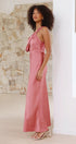 Resmi etkinlikler veya lüks toplantılar için mükemmel olan bu elbise, şık ten rengi topuklu ayakkabılar ve zarif altın takılarla güzel bir şekilde eşleşiyor. Klasik maxi uzunluğu ve kaliteli kumaşı, onu stil ve konforun bir karışımını arayanlar için ideal bir seçim haline getiriyor.