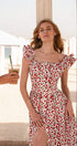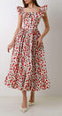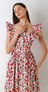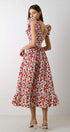 Griselda Kiraz Baskılı Volanlı Midi Elbise