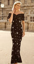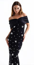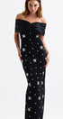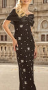 Griselda Omuzu Açık Kristal Taşlı Maxi Elbise