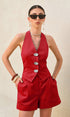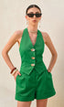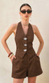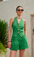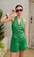 Halter Yaka Düğmeli Üst ve Şort Takımı