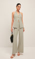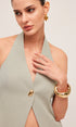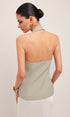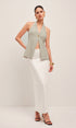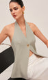 Halter Yaka Metal Düğme Detaylı Sırtı Açık Yelek