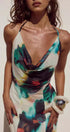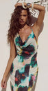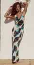 Boyundan Bağlamalı Resort Tarzı Baskılı Maxi Elbise