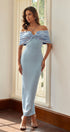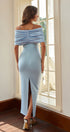 Hannah Mavi Düşük Omuzlu Drapeli Maxi Elbise