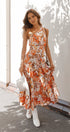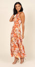 Hedda Baskılı Tek Omuz Katlı Uzun Elbise
