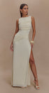 Drapeli Yüksek Yaka Uzun Elbise – Krem