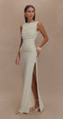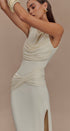 Zamansız şıklığın modern yorumu. Drapeli üst detayı ve vücuda oturan yapısıyla zarif bir siluet sunan bu elbise, özel davetlerden kokteyllere kadar tüm sofistike etkinlikler için kusursuz bir tercih. Hafif esnek kumaşı ve yırtmaç detayı, hem hareket özgürlüğü hem de zarafet sunar.