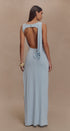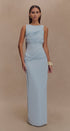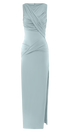 Drapeli Saten Uzun Elbise – Açık Mavi