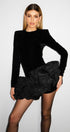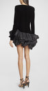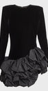 Hermosa Ruffle Asimetrik Etek Mini Kadife Elbise