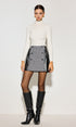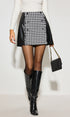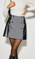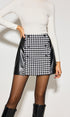 Yüksek Bel Kazayağı Desenli Panelli Suni Deri Etek