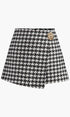 Yüksek Bel Metal Düğmeli Kazayağı Desenli Şort