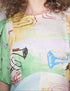Her adımda bir tatil hikâyesi… “Holiday Sketch” elbise, rengarenk blok tasarımı ve tropik illüstrasyonlarıyla yazın enerjisini üzerinizde taşır. Palmiye ağaçları, deniz figürleri ve seyahat esintili detaylarla bezenmiş bu parça, özgün stil arayanlar için tasarlandı. Balon kolları ve zarif kesimiyle hem şık hem de rahat bir görünüm sunar.